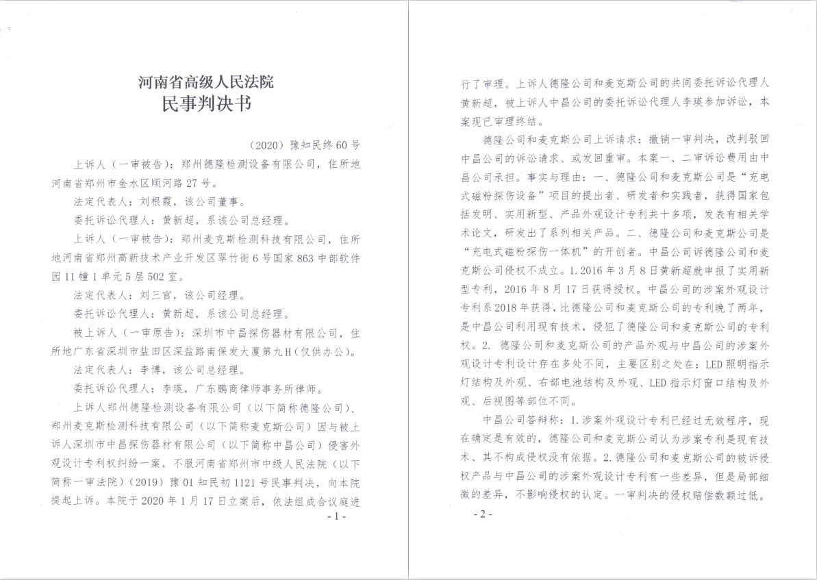 喜讯,中昌公司知识产权维权取得又一胜利!