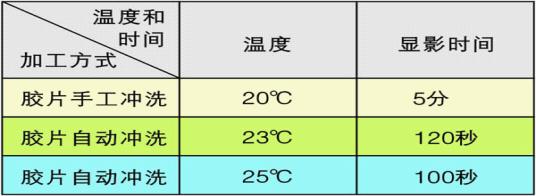 若自动显影冲洗处理,温度高且显影时间长时可能要偏离以上胶片的体系级别。